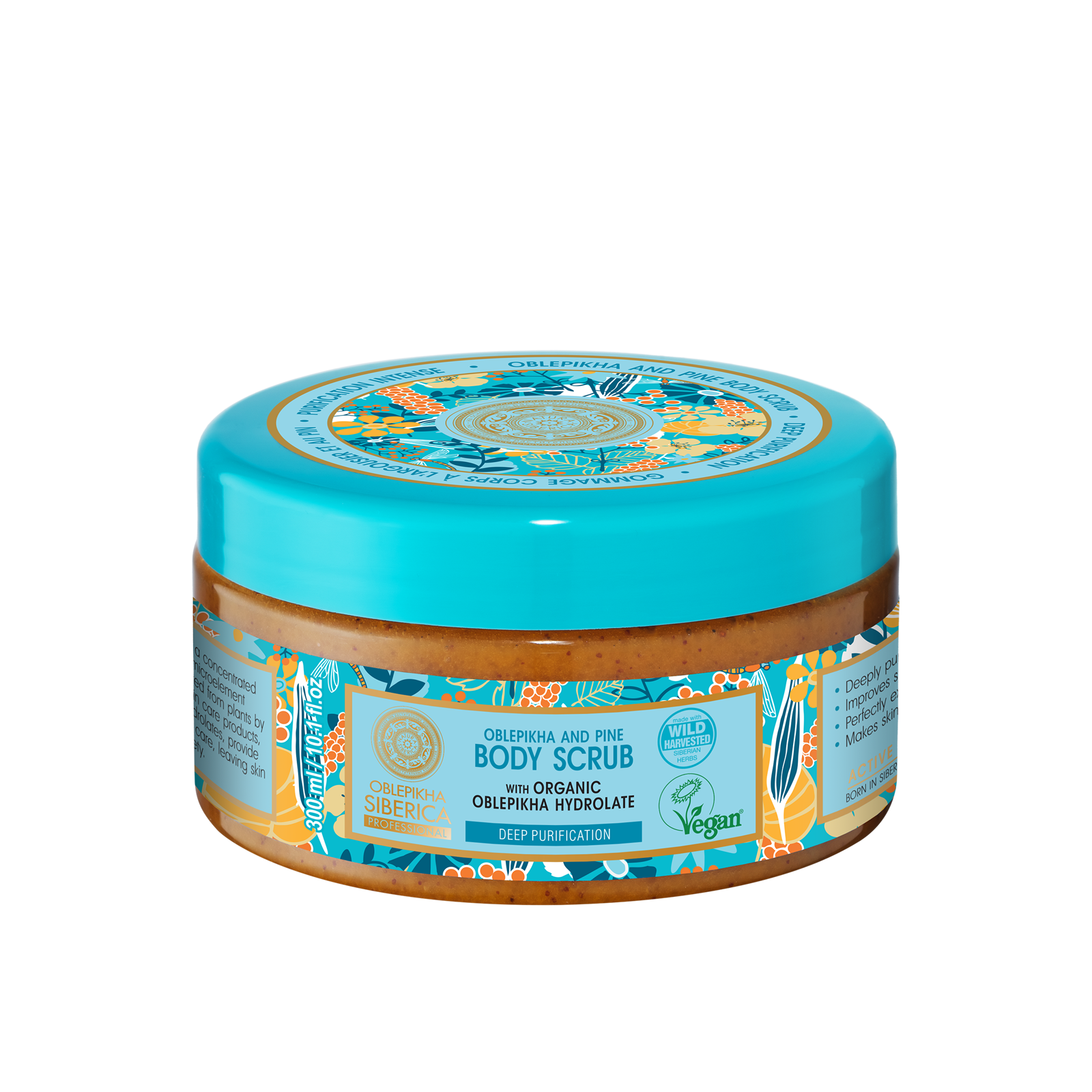 Wegański, głęboko oczyszczający sosnowy peeling do ciała na bazie hydrolatu z rokitnika Oblepikha ProfessionalWegański, głęboko oczyszczający sosnowy peeling do ciała na bazie hydrolatu z rokitnika Oblepikha Professional