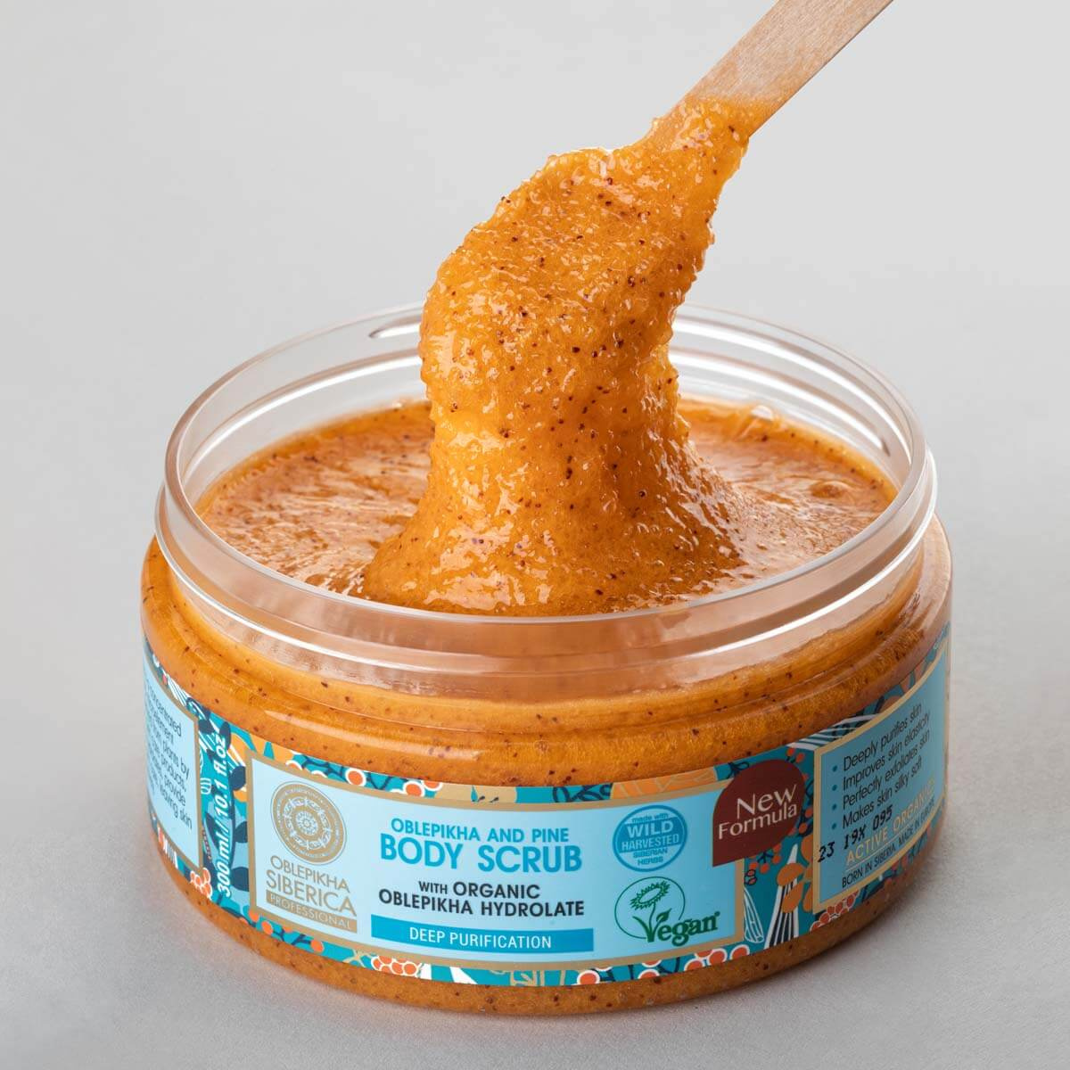 Nowa, certyfikowana formuła oparta na hydrolacie z rokitnika. Wegański peeling do ciała z organicznym olejem z rokitnika ałtajskiego, sosny syberyjskiej i organicznym ekstraktem z szałwii. Składniki te głęboko oczyszczają i odnawiają skórę. Dodatkowo zwiększają elastyczność skóry, czyniąc ją miękką, elastyczną i jedwabistą w dotyku.